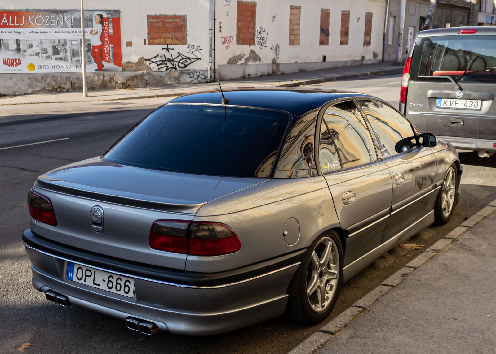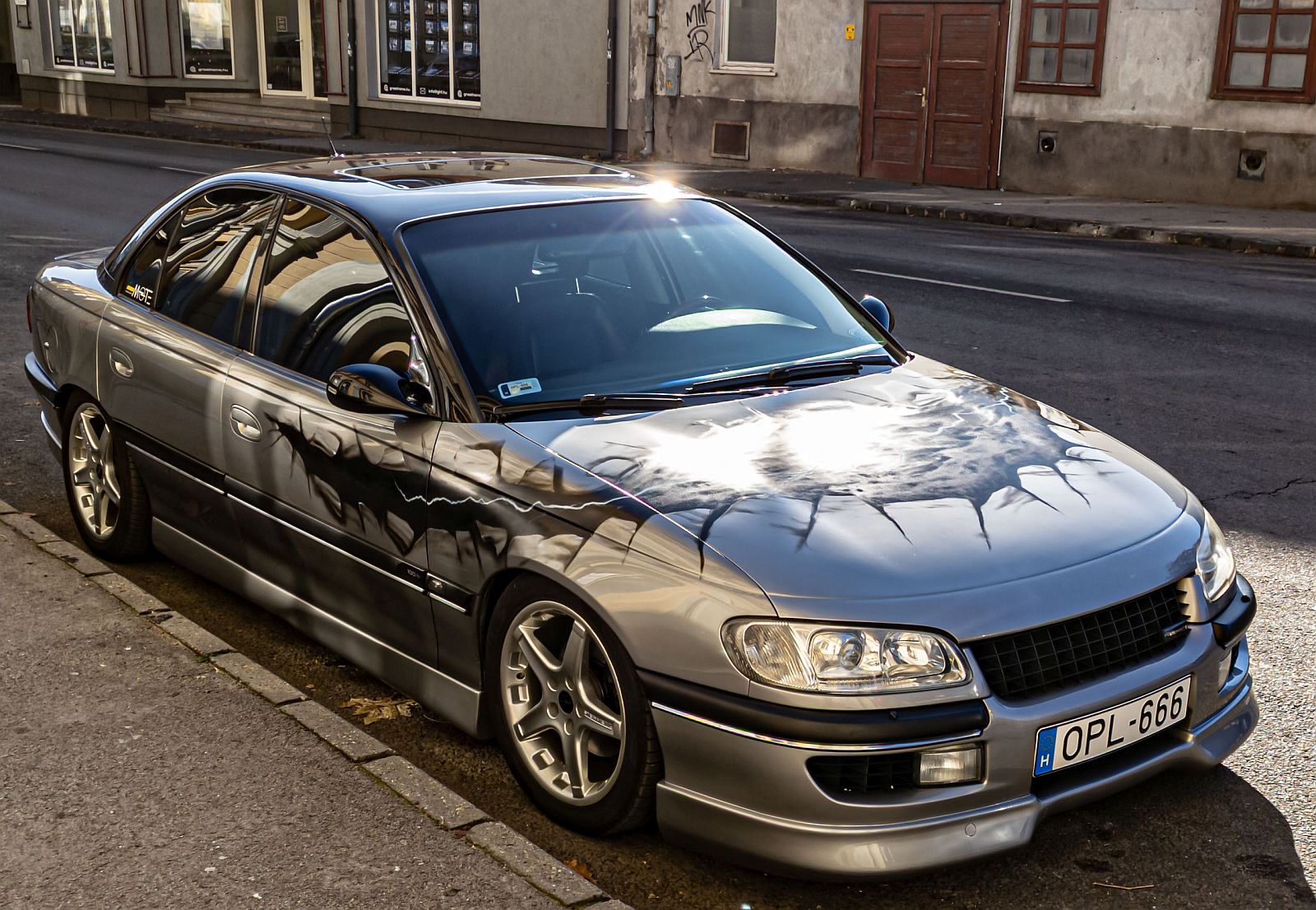 Dieser Opel Omega B gehört mit Sicherheit zu einem Opel-fan, der auch eine passende Kennzeichen bestellt hat, unddas Auto getunt hat. Foto: Dezember, 2022.