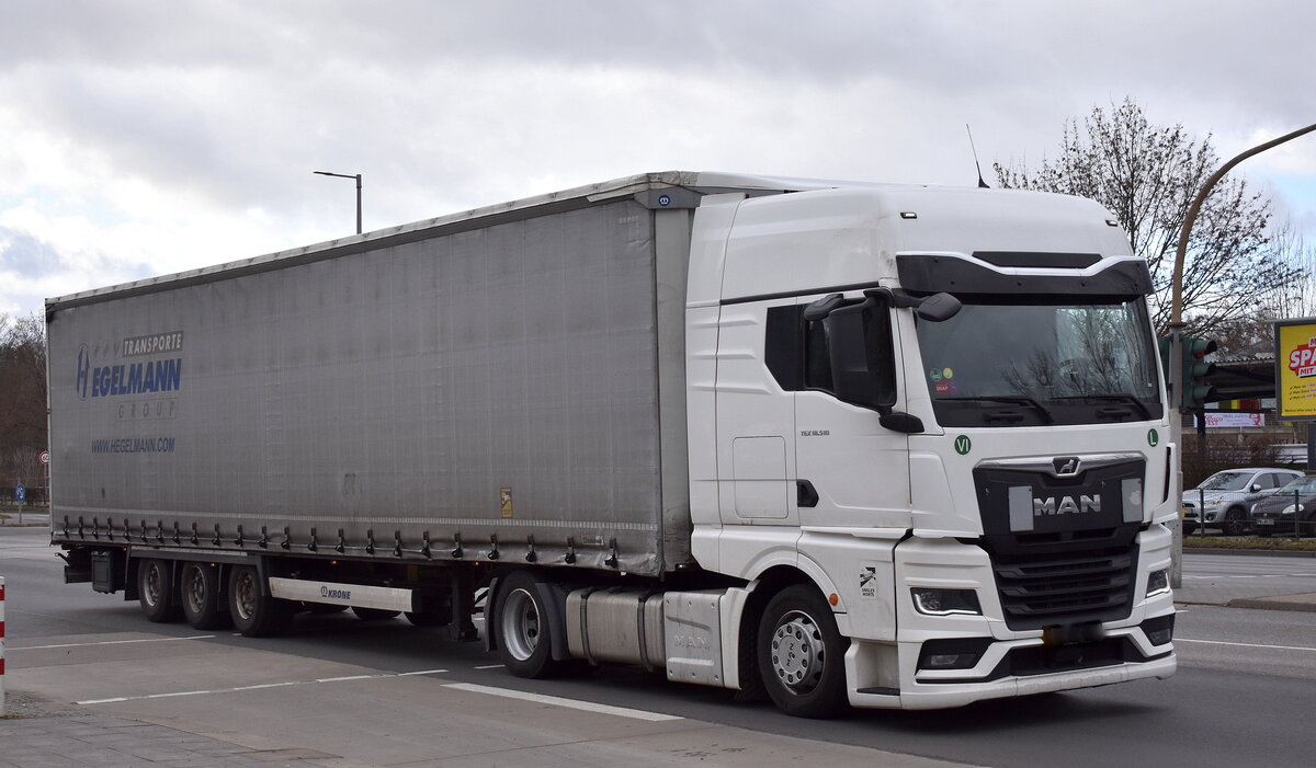 =Iveco-Sattelzug mit einem Auflieger von TCT steht im Juli 2022 auf einem Rastplatz an der A 9