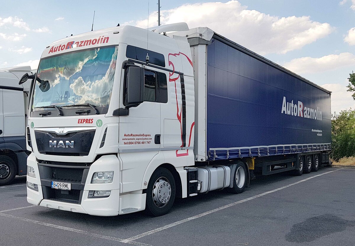 =MAN-Sattelzug von AUTORAZMOLIN-Expres steht auf einer Rastanlage an der A 70, 06-2022