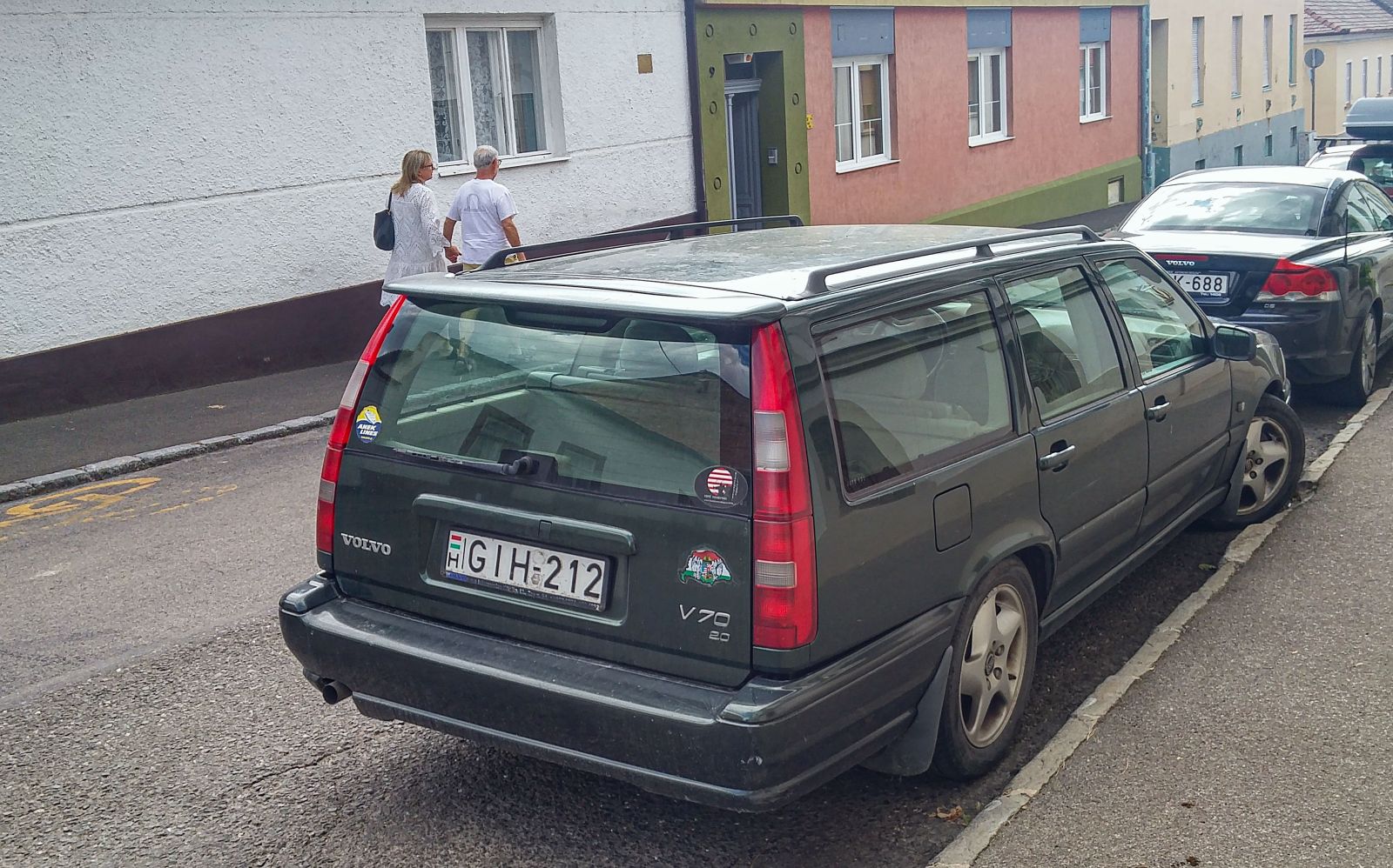 Rückanischt: Volvo v70, der ersten Generation in "Emeradl Green" oder "Dark Olive". Foto: August, 2021.