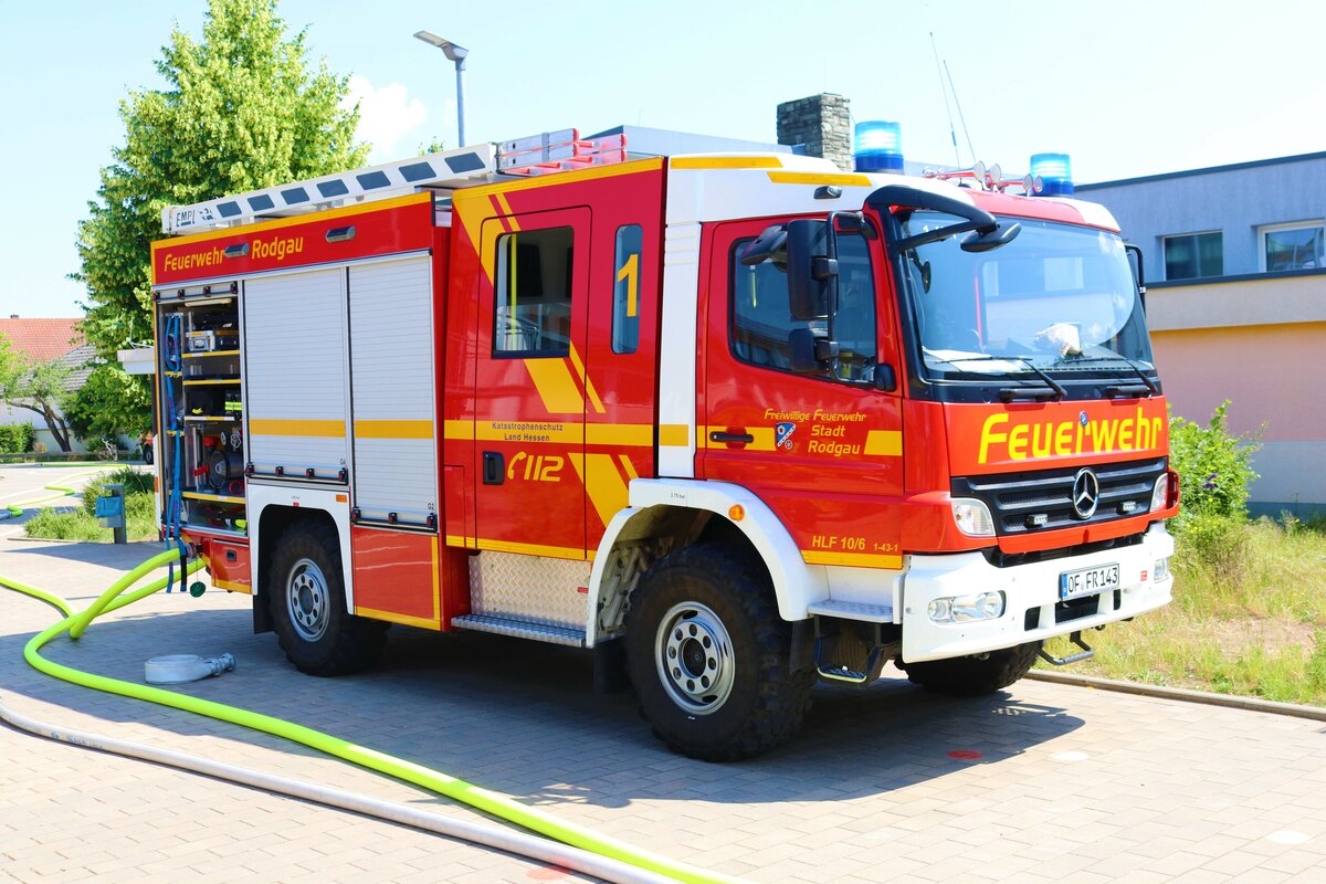 Feuerwehr Rodgau Mercedes Benz Atego HLF10/6 am 17.06.23 bei einer Jugendfeuerwehrübung in Rödermark