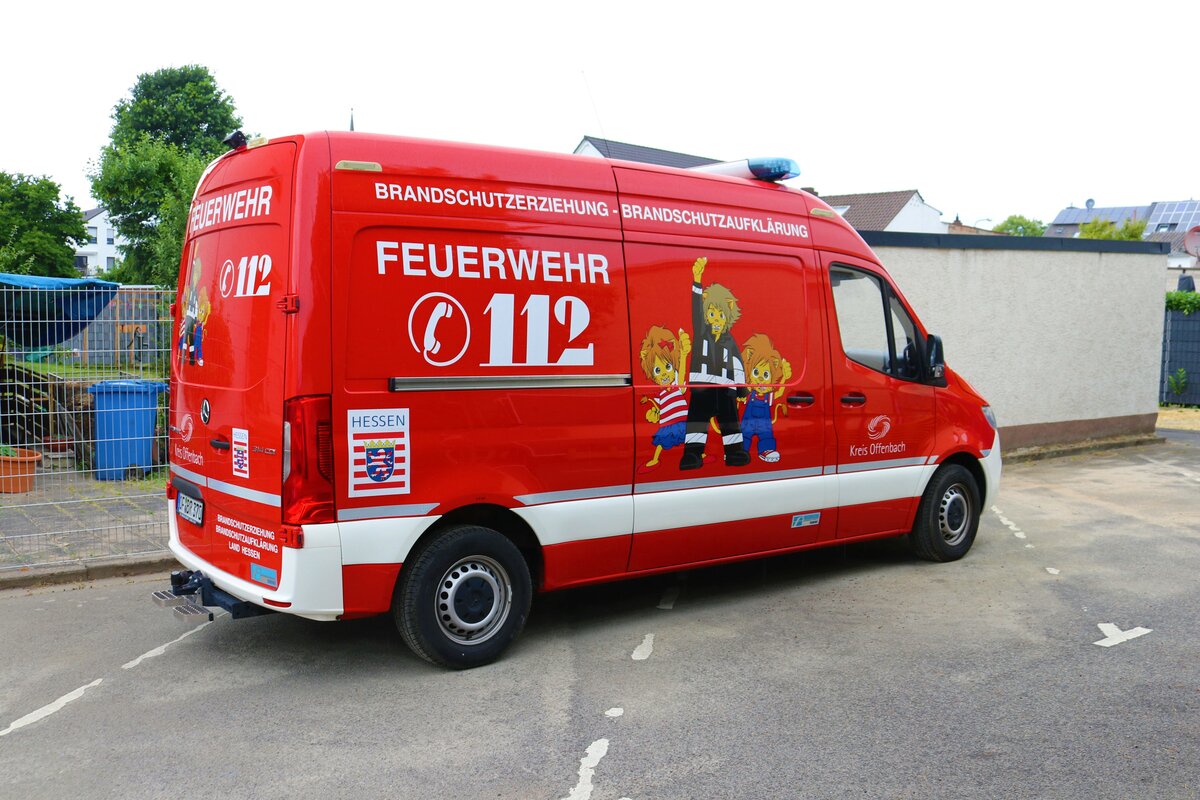 Brandschutzerziehung Hessen Landkreis Offenbach Mercedes Benz Sprinter Gerätewagen am 01.07.23 in Seligenstadt