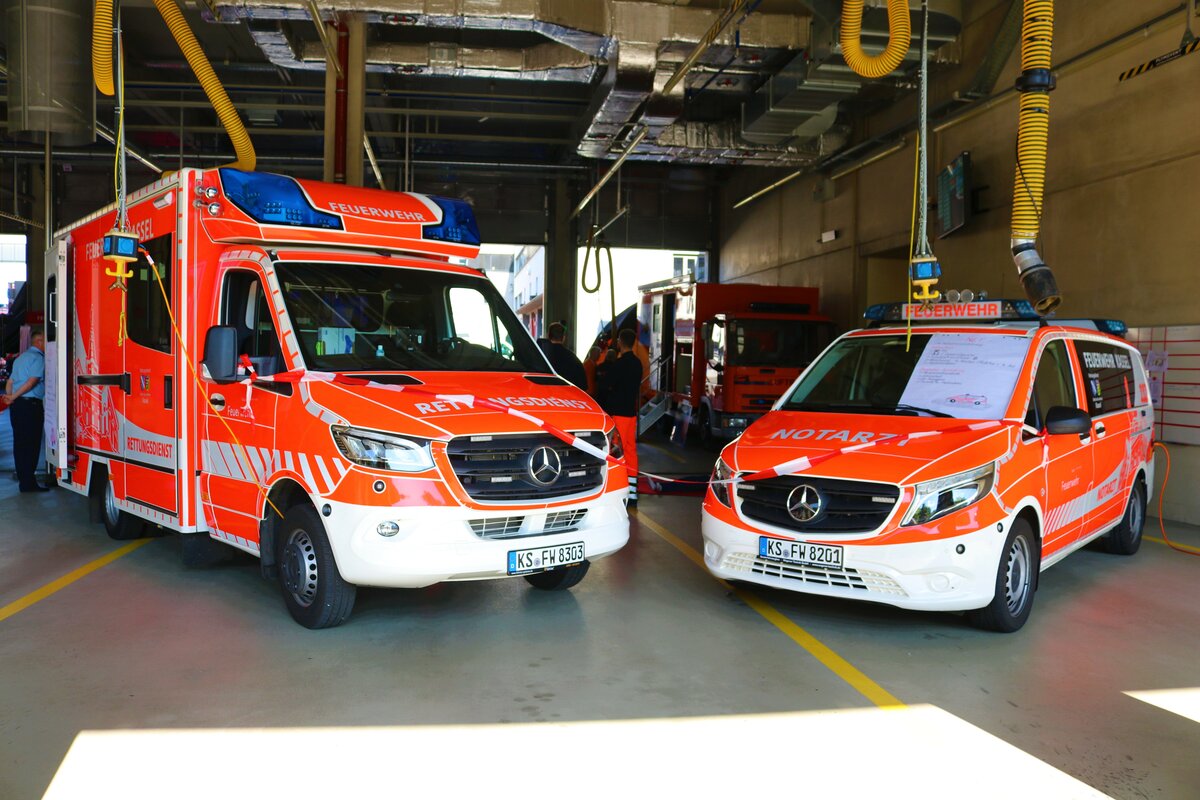 Berufsfeuerwehr Kassel Mercedes Benz Sprinter RTW und Vito NEF am 04.06.23 beim Tag der offenen Tür