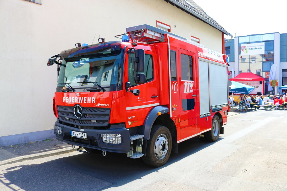 Feuerwehr Frankfurt am Main Mercedes Benz Atego LF10 am 03.06.23 bei der 150 Jahre Feuerwehr Seckbach Feier