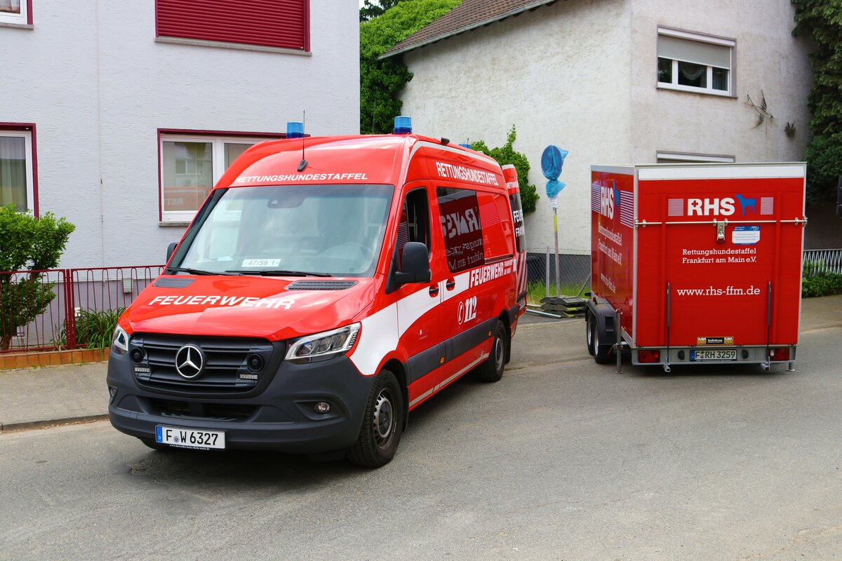 Feuerwehr Frankfurt am Main Mercedes Benz Sprinter GW-Rettungshundestaffel mit Anhänger am 03.06.23 bei der 150 Jahre Feuerwehr Seckbach Feier