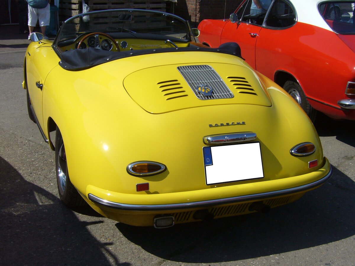 Heckansicht eines Porsche 356 A Speedster 1600 von 1957. Oldtimertreffen an der "Alten Dreherei" in Mülheim an der Ruhr am 17.06.2023.