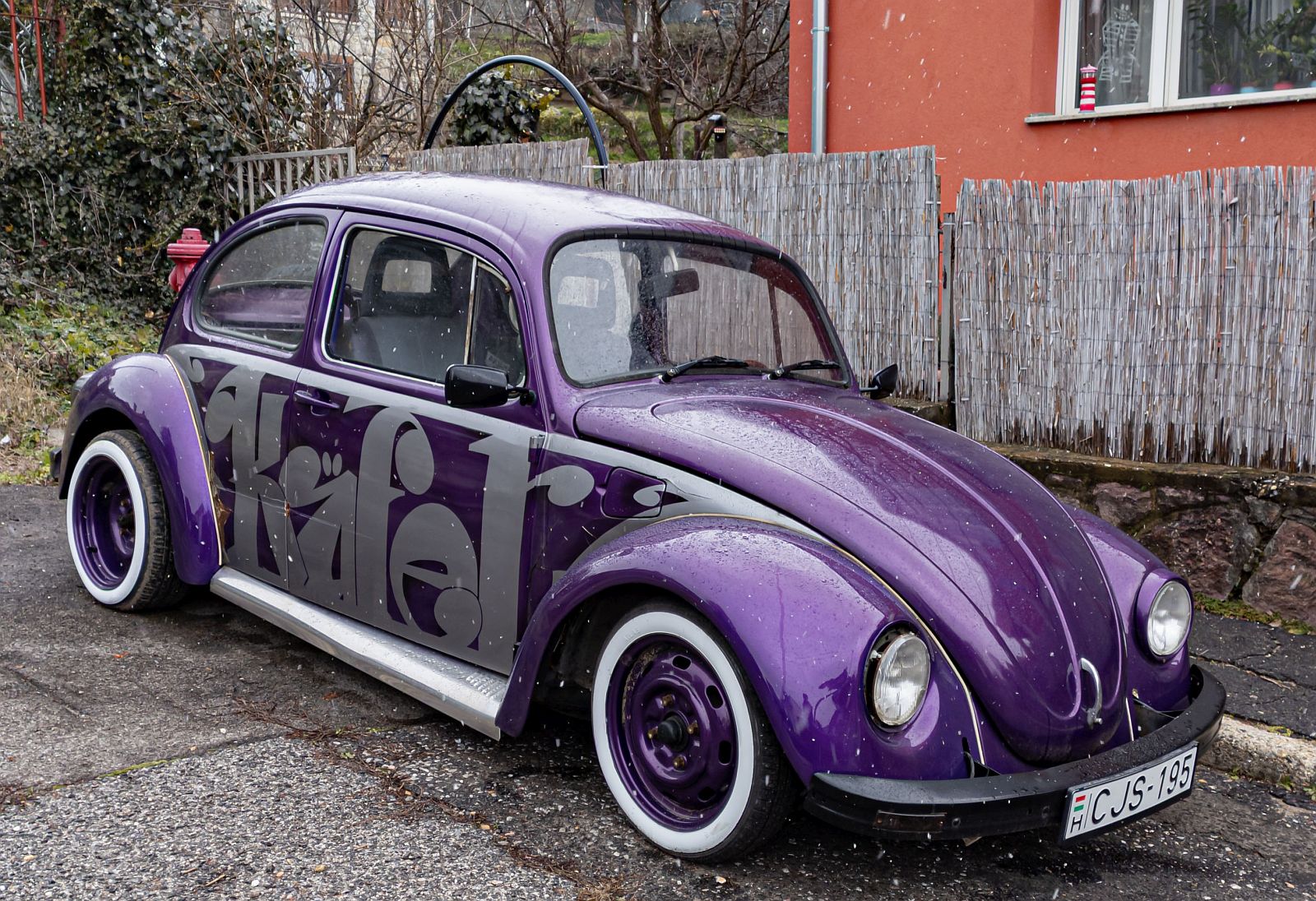 1974-er VW Käfer getunt und auf Lila umlackiert. Foto: Oktober, 2021