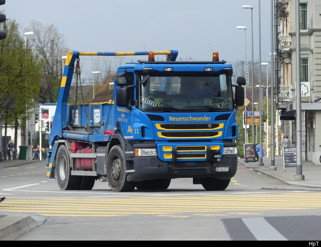Scania Muldentransporter unterweg in der Stadt Solothurn am 19.04.2023