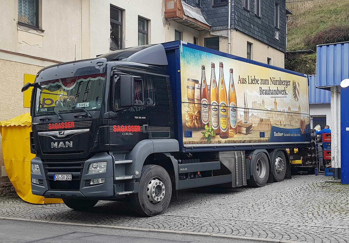 =MAN TGS des Getränkehändlers SAGASSER steht im Dezenber 2022 in Lauscha
