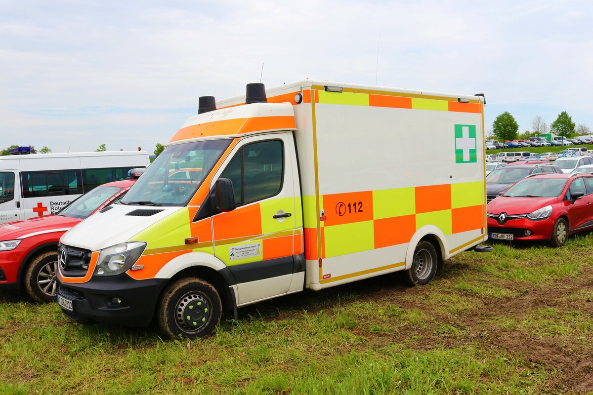 DRK Mercedes Benz Sprinter am 12.05.23 auf dem Rettmobil Parkplatz in Fulda