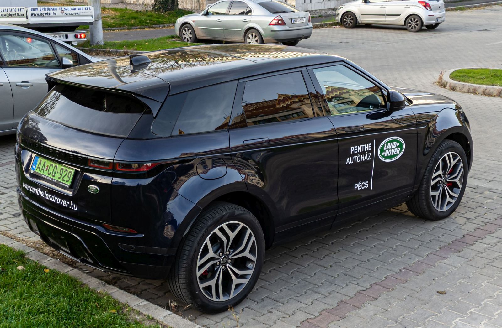 Rückansicht / Seitenansicht: Land Rover Range Rover Evoque Mk2 Plugin Hybrid. Die Aufnahme stammt von Oktober, 2022.