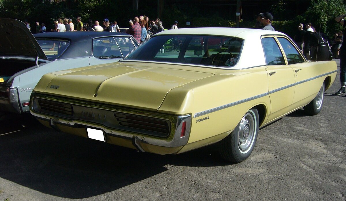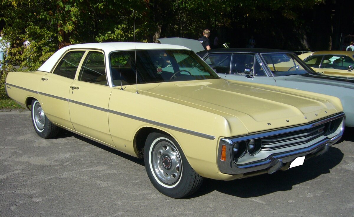 Dodge Polara Custom fourdoor Sedan von 1971. Im Modelljahr 1971 war der Polara die mittlere Ausstattungsvariante im Modellprogramm von Dodge. Darunter rangierte der Coronet und darüber der Monaco. Ein solcher Polara Custom war ab einem Kaufpreis von US$ 4376,00 zu bekommen. Der Wagen ist in der Farbkombination butterscotch/white lackiert. Der V8-Motor hat einen Hubraum von 6292 cm³ und leistet in der stärksten Version 340 PS. Altmetall trifft Altmetall am 01.10.2023 im LaPaDu Duisburg.