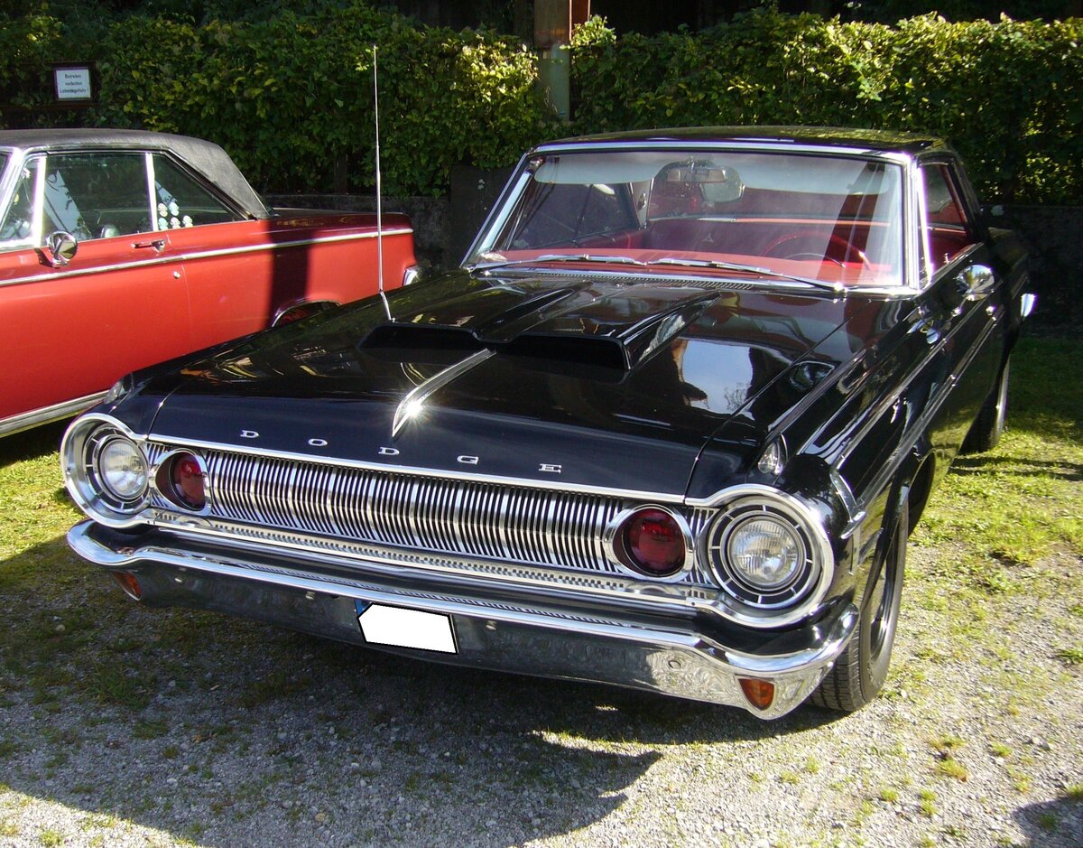 Dodge Polara Hardtop Coupe aus dem Jahr 1964. Die Modellreihe Polara war im Jahr 1964 die mittlere Ausstattungsvariante im Programm von Dodge. Darunter war die Baureihe "Coronet" und darüber das Modell "Monaco" angesiedelt. Es gab die Modelle in fast allen Karosserieversionen. Das hier gezeigte Coupe hat den stärksten, damals lieferbaren, V8-Motor. Dieser hat einen Hubraum von 440 cui (7210 cm³) und leistet 425 PS. Altmetall trifft Altmetall am 01.10.2023 im LaPaDu Duisburg.