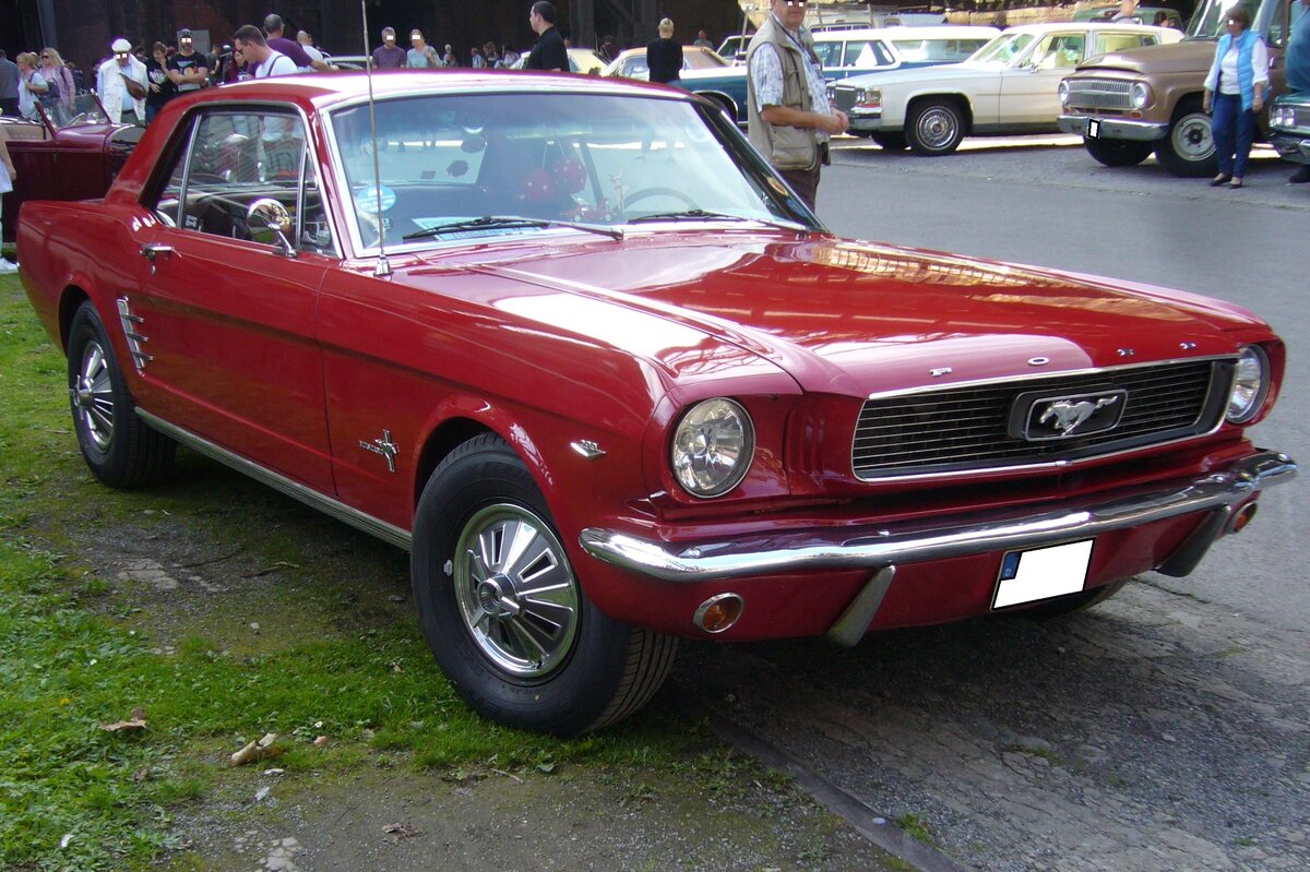 Ford Mustang 1 Hardtop Coupe. Hier wurde ein 1965´er Mustang in der Karosserievariante Hardtop Coupe und im Farbton rangoon red abgelichtet. Der V8-Motor dieses "Ponys" hat einen Hubraum von 289 cui (4736 cm³) und leistet 203 PS. Die Höchstgeschwindigkeit lag, je nach gewähltem Getriebe, zwischen 175 km/h und 185 km/h. Altmetall trifft Altmetall am 01.10.2023 im LaPaDu Duisburg.