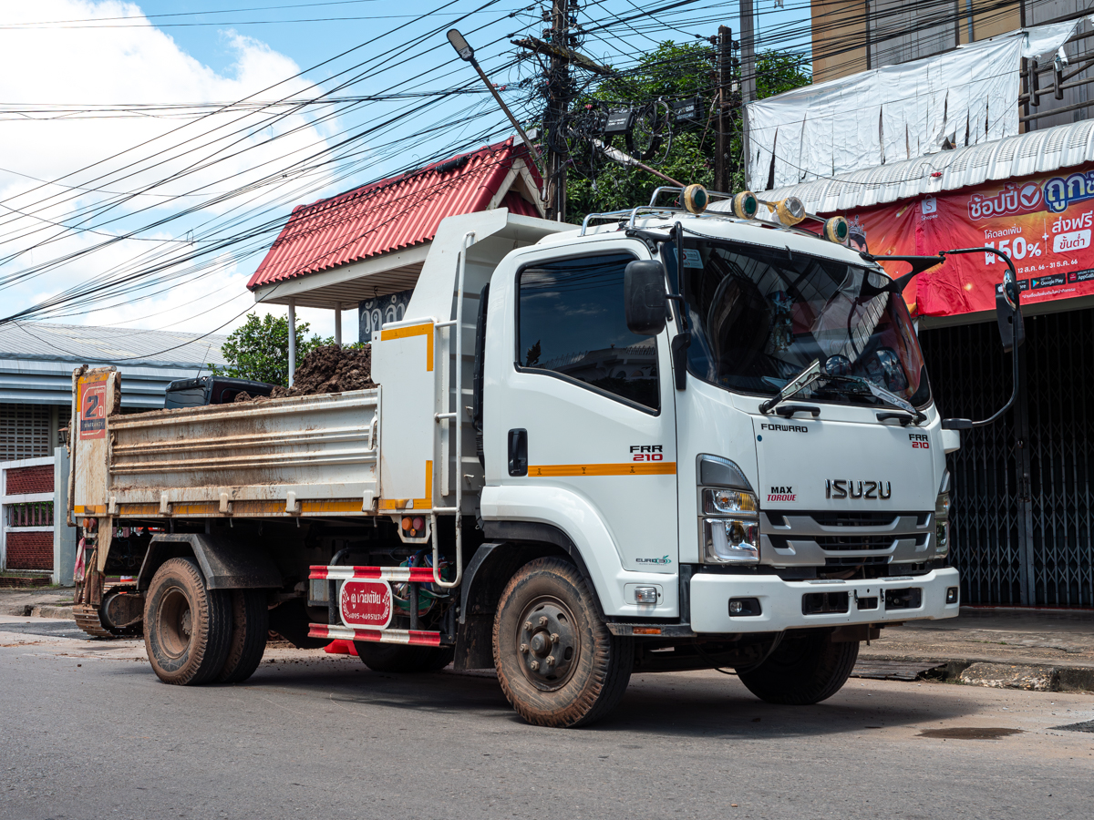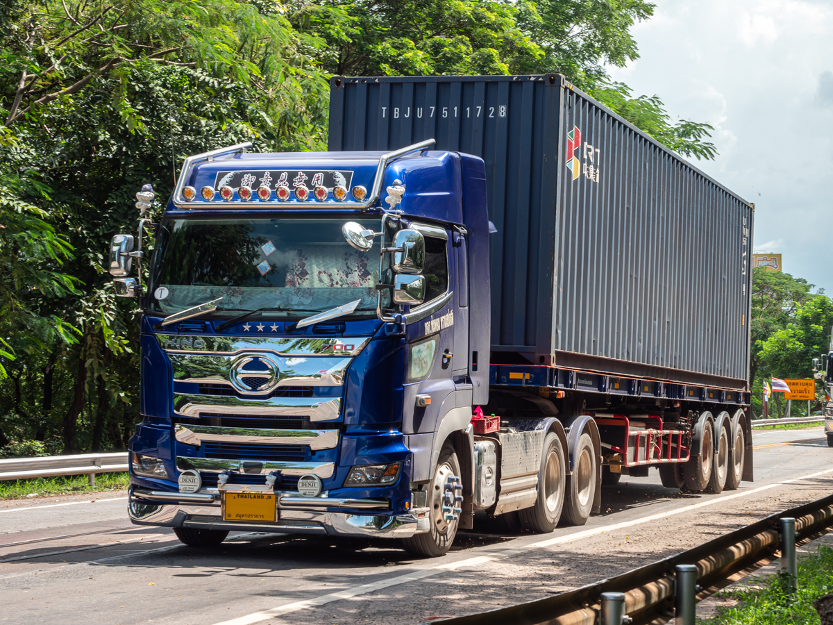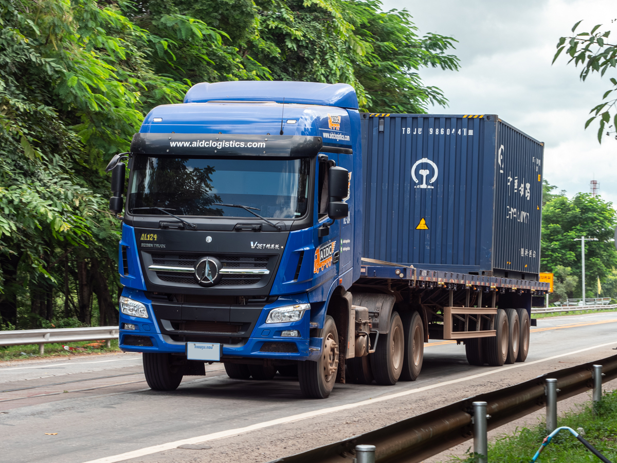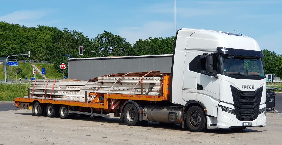 =Iveco-Sattelzug transportiert Betonfertigteile im Juni 2023