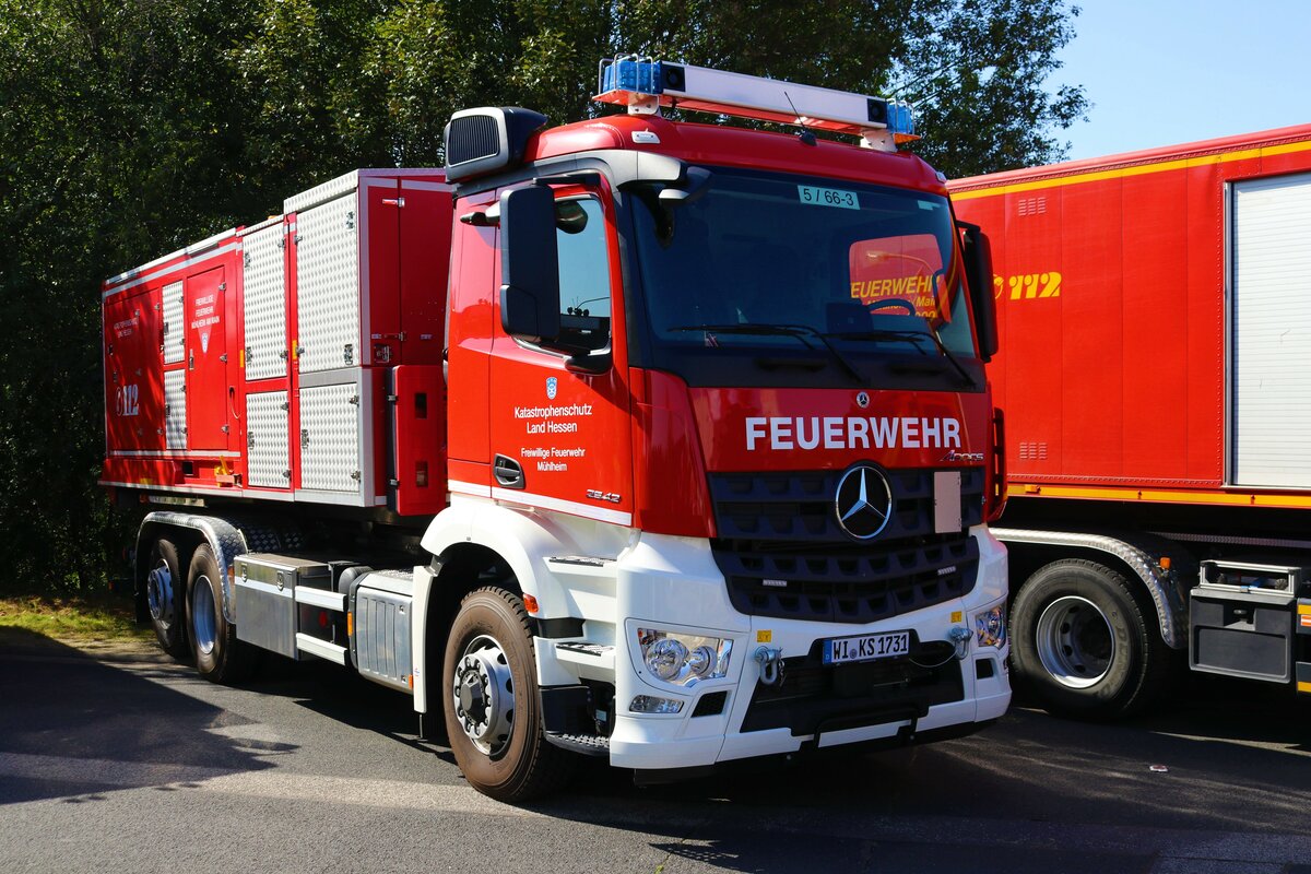 Feuerwehr Mühlheim am Main Mercedes Benz Arocs WLF KatS am 10.09.23 beim 150 Jährigen Jubiläum