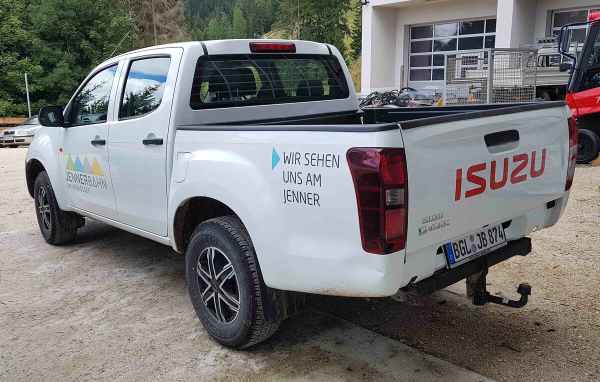 =Toyota Hilux der Firma HEITAUER steht am Götschenlift im September 2022