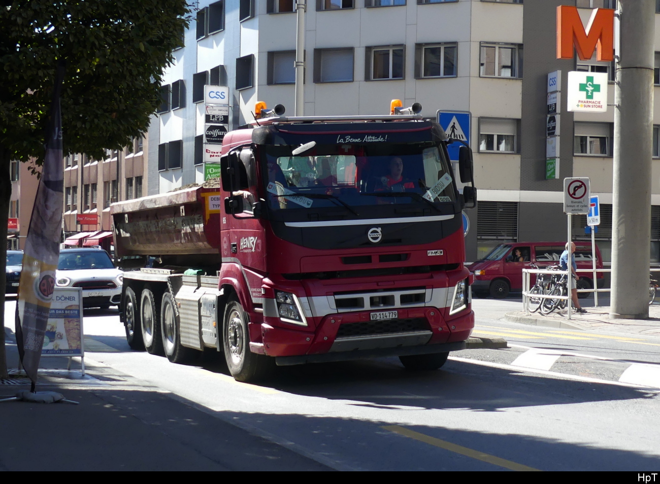 Volvo mit Muldentransporter unterwegs in Morges/VD am 01.09.2023
