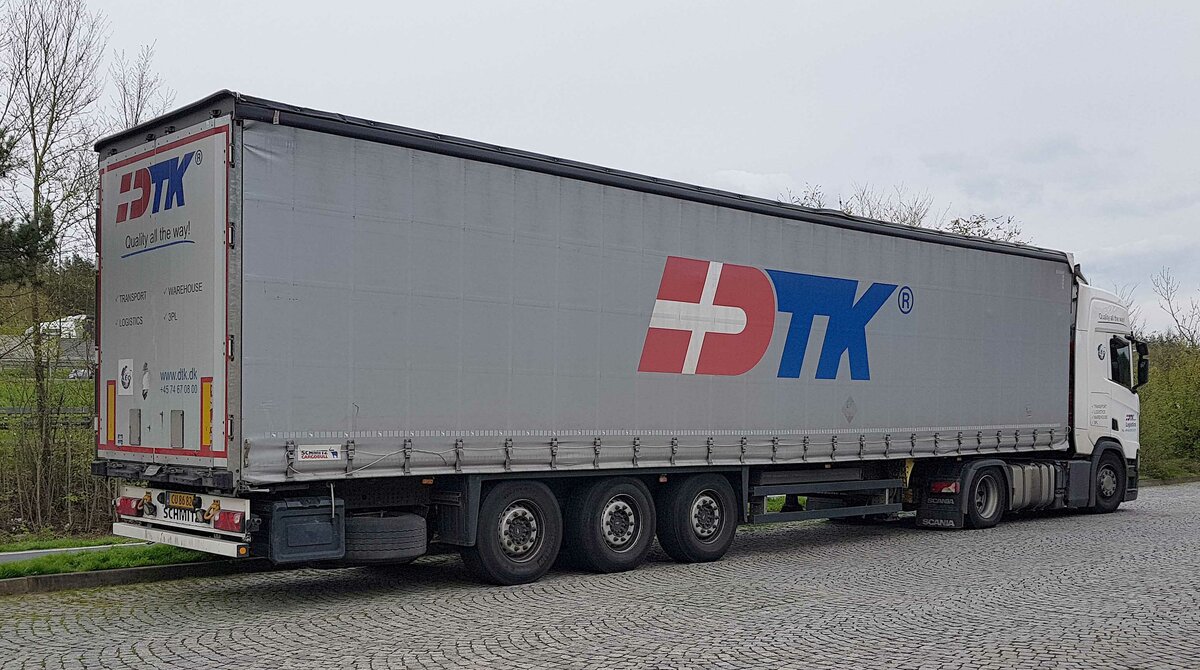 =Scania R 450-Sattelzug von DTK-Logistics aus Dänemark, 04-2023