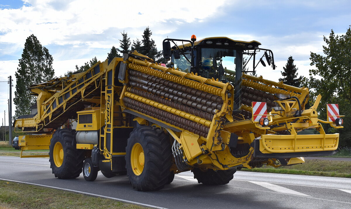 ROPA Fahrzeug- und Maschinenbau GmbH mit einer Rübenmaus (wahrscheinlich Typ Maus 6?), ein selbst fahrender Reinigungslader zur Zuckerrübenernte am 20.09.23 Höhe Bahnübergang Bahnhof Rodleben