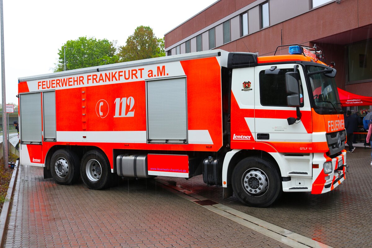 BF Frankfurt am Main Mercedes Benz Actros GTLF (Florian Frankfurt 21/26-1) und RTW+KdoW am 21.04.24 beim Tag der offenen Tür der BF Wache 21 in der Nordweststadt