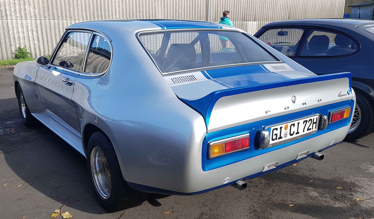 Ford Capri 1 2300RS aus dem Jahr 1973. Hier sehen wir einen absolut originalen, nicht verbastelten und noch nie restaurierten Ford Capri 1 2300RS aus dem letzten Modelljahr des Capri 1. Er hat aber schon die vorderen Doppelscheinwerfer und die größeren, hinteren, Rückleuchten. Der V6-Motor hat einen Hubraum von 2637 cm³ und leistet 150 PS. Techno Classica Essen am 05.04.2024.