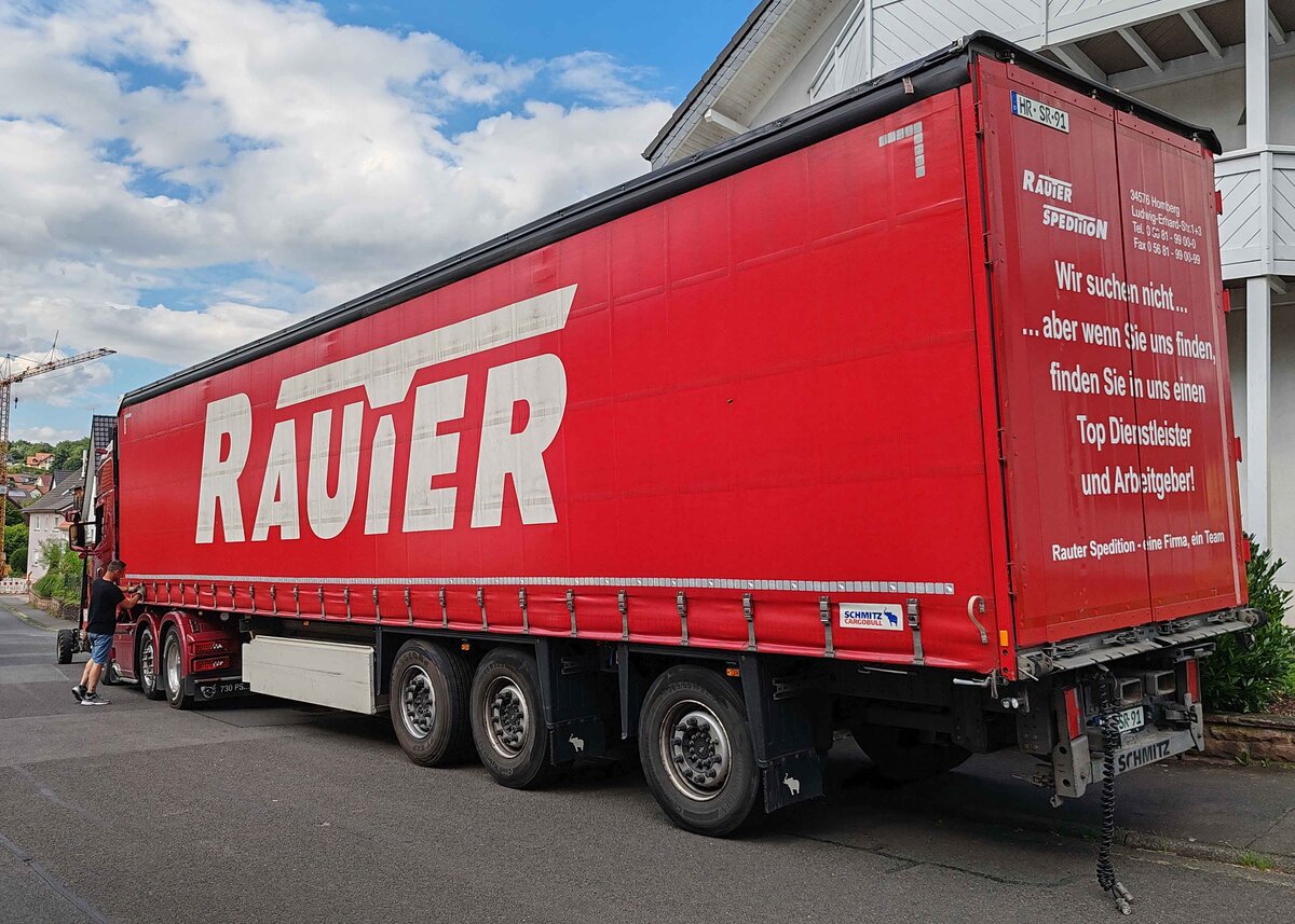 =Scania Super R 730 der Spedition RAUTER steht zur Entladung in Petersberg-Marbach, 07-2024