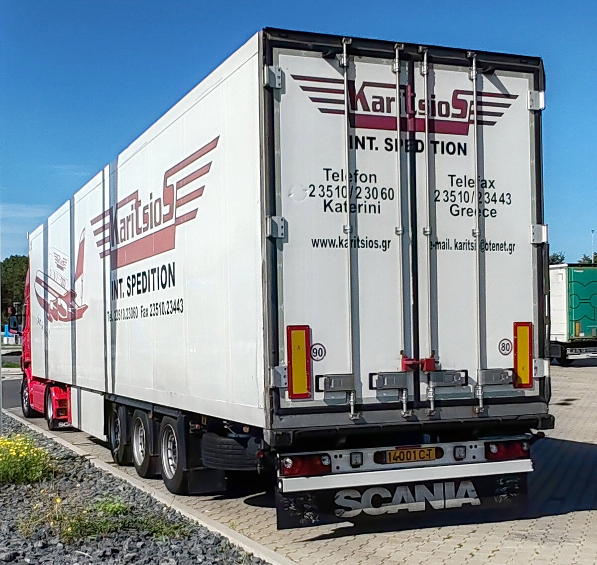 =Scania Super R 500 der griechischen Spedition KARITSIOS rastet an der A 7, 08-2024