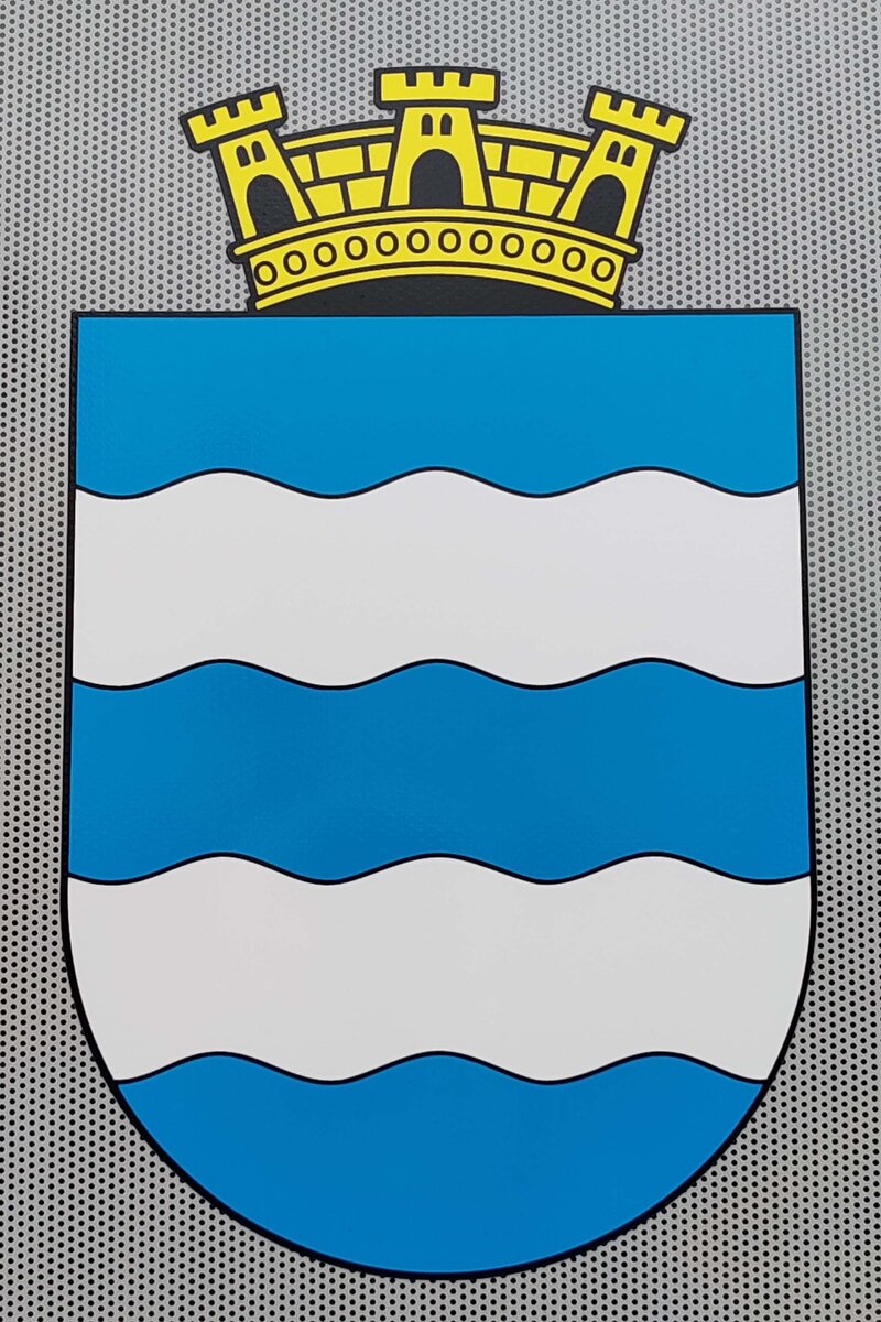 =Stadtwappen der norwegischen Stadt HARSTADT angebracht auf dem Peugeot Rifter der Hafenverwaltung, Oktober 2024