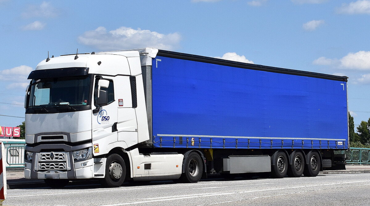 DSO Transport Spedycja Sp. z o.o. Sp. k aus Polen mit einem Sattelzug mit neuer Renault T-Truck Zugmaschine am 15.07.24 Hamburg-Harburg.