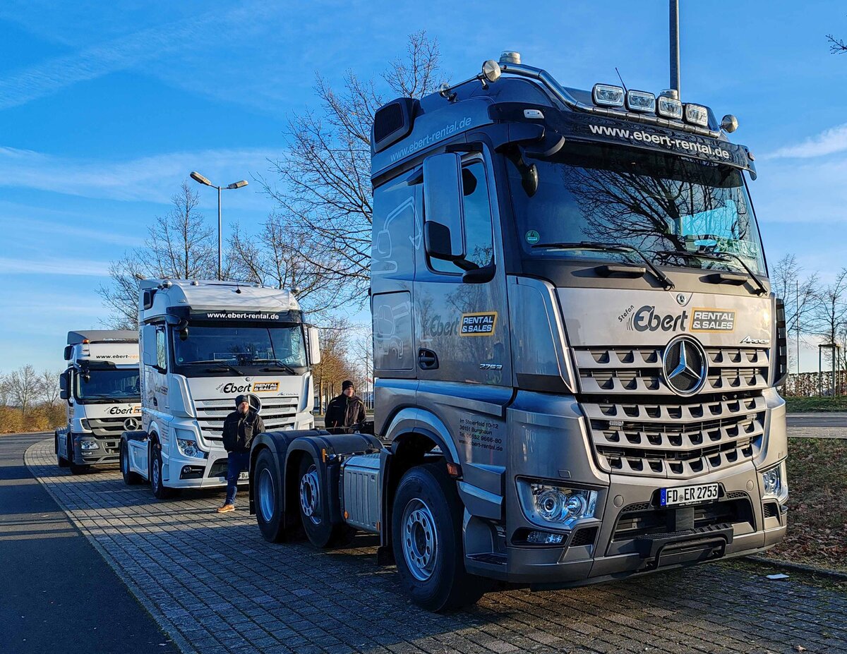 =MB Actros 1844 von EBERT-Rental, unterwegs in Fulda bei einer der vielen bundesweiten Bauerndemos im Januar 2024