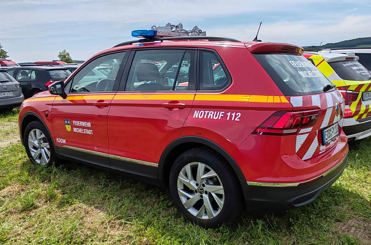 =VW Tiguan als Kommandowagen der Feuerwehr MICHELSTADT steht auf dem Parkgelände der Rettmobil 2024 in Fulda.