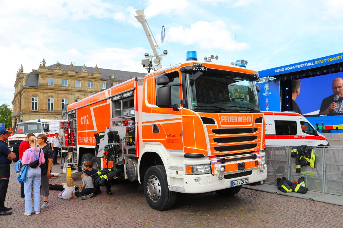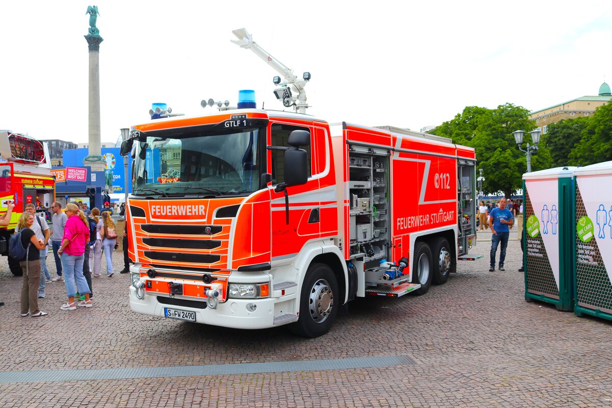 Feuerwehr Stuttgart Scania GTLF am 07.07.24 beim Blaulichttag in Stuttgart