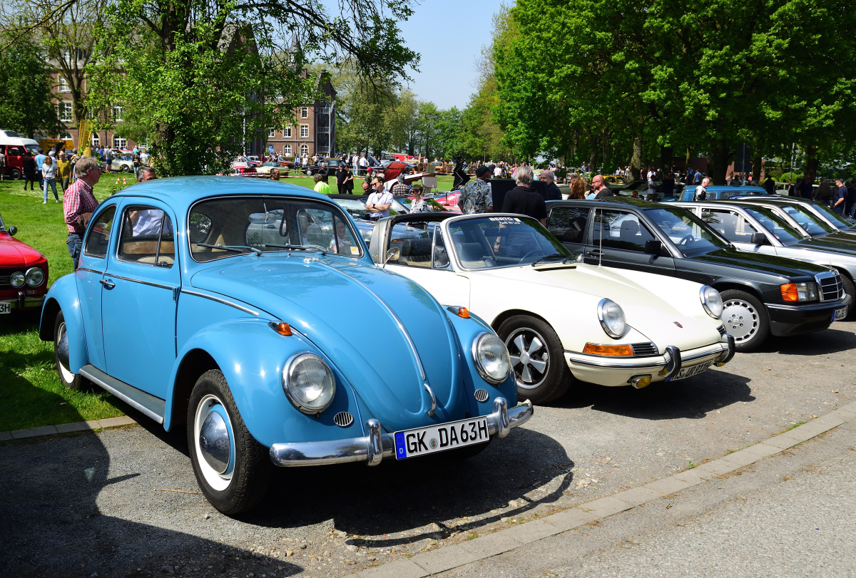 VW Käfer vor Porsche Targa, beim Frühlingserwachen Oldtimer-IG Grenzland auf dem Gelände des Sportpark Loherhof Geilenkirchen 1.5.24