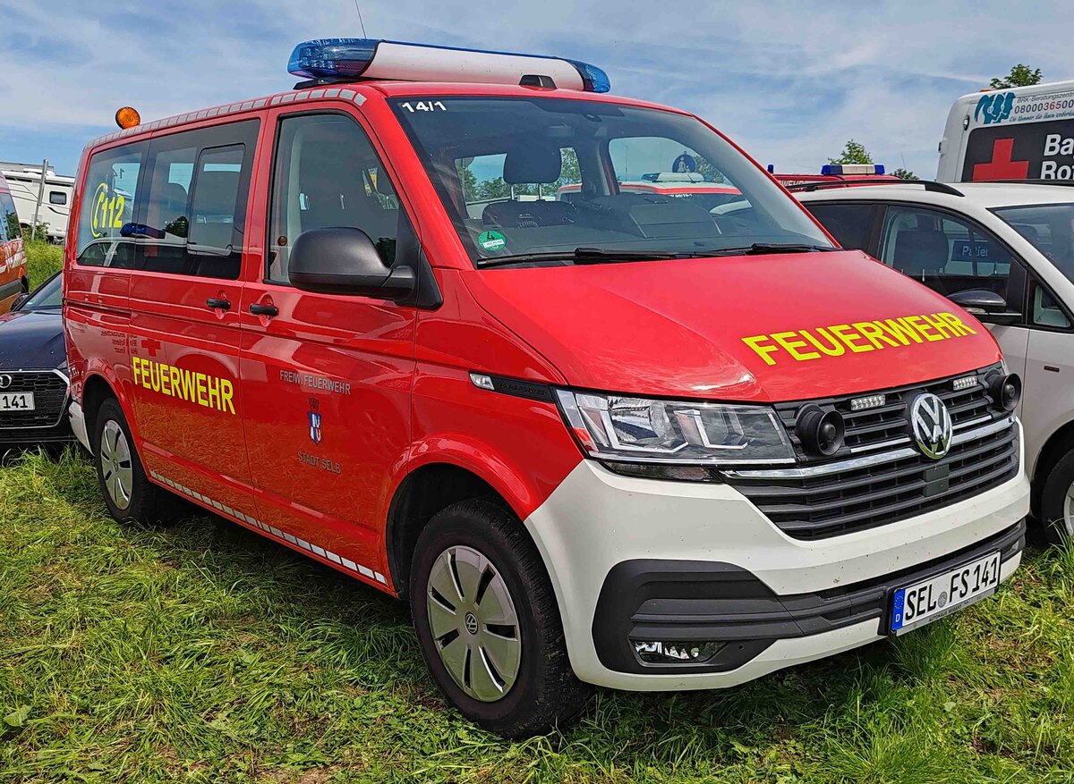 =VW T 6 als MTW der Feuerwehr SELB gesehen im Mai 2024 auf dem Besucherparkplatz der RettMobil