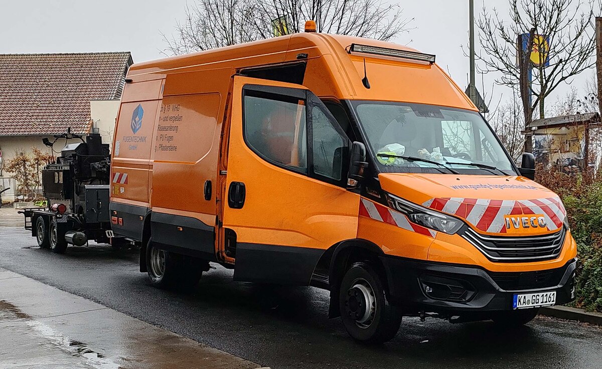 =Iveco Daily von FUGENTECHNIK GmbH steht auf dem Rasthof Werneck im Dezember 2023