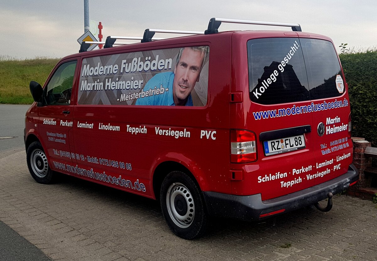 =VW T 5 vom Fußbodenlegebetrieb MARTIN HEIMEIER steht im Juni 2024 in Artlenburg