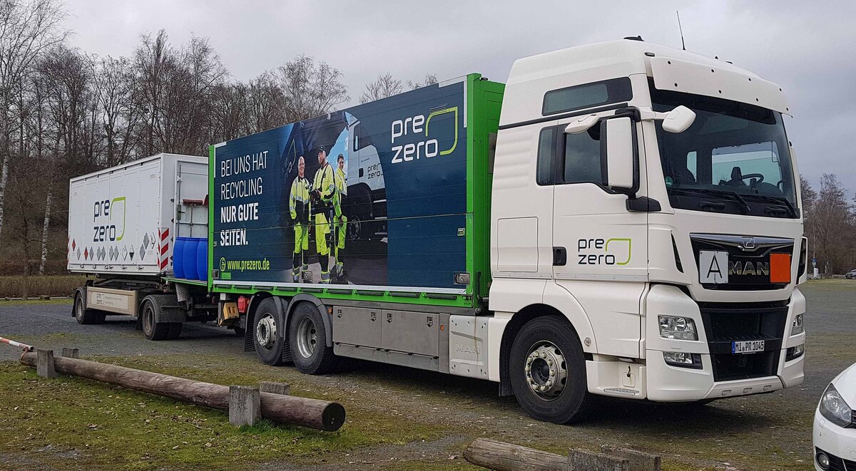 =MAN Hängerzug von PREZERO steht in Hünfeld anl. der wiederkehrenden Sammlung von Schadstoffen, 03-2024