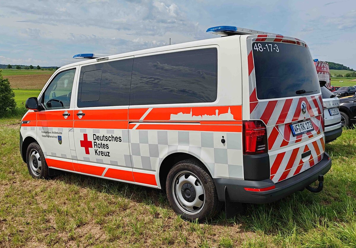 =VW T 6 als Einsatzfahrzeug vom DRK WOLFENBÜTTEL steht auf dem Parkgelände der Rettmobil 2024 in Fulda