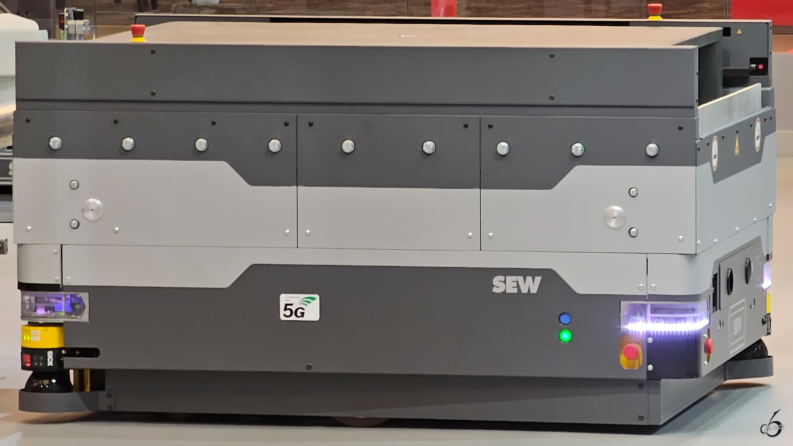 Ein autonomes Transportfahrzeug für den Logistikbereich der Firma SEW Eurodrive, so gesehen im April 2024 auf der Hannovermesse.
