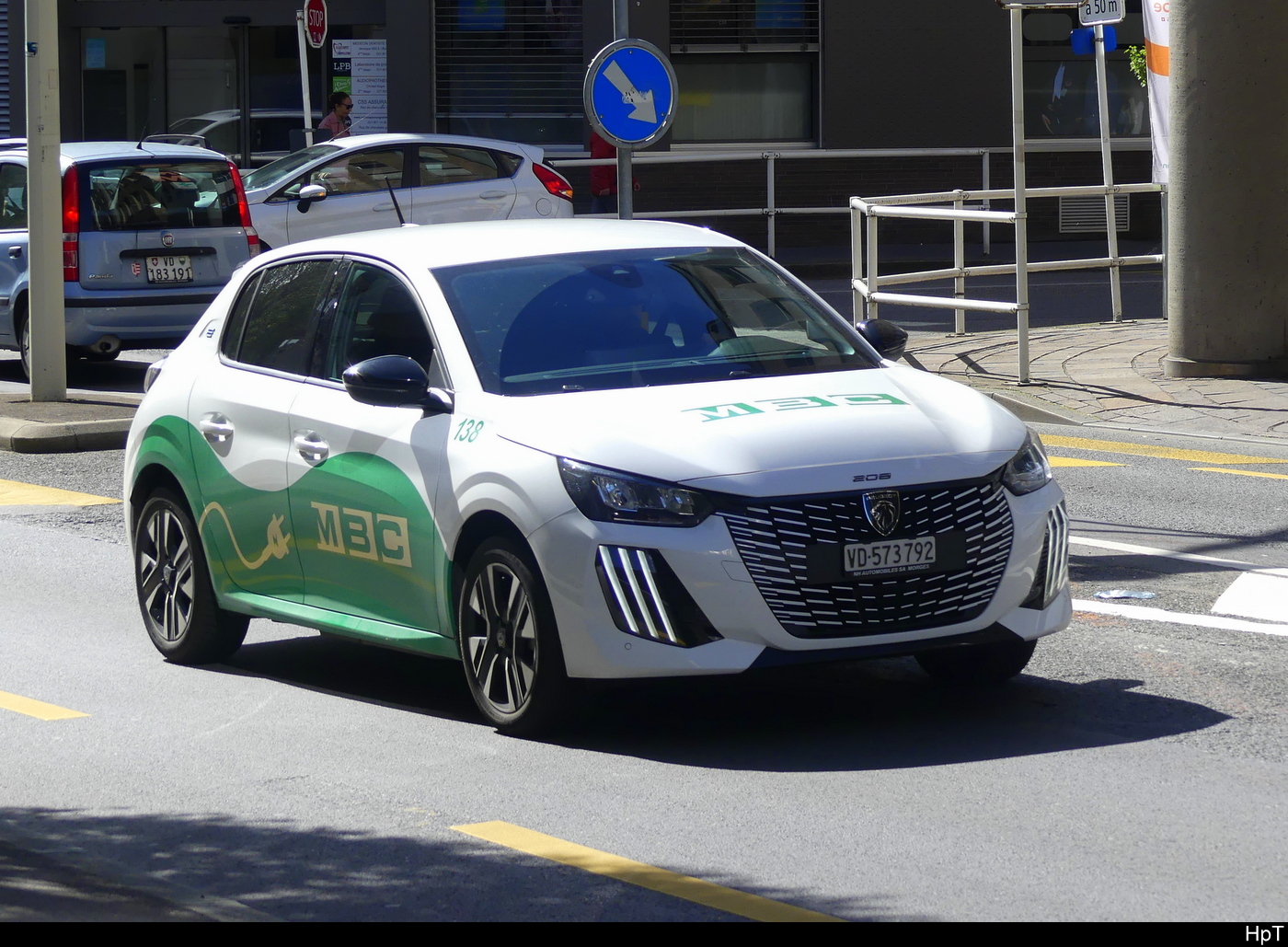 MBC Dienstfahrzeug - Peugeot E208 Nr.138 unterwegs auf Dienstfahrt in den Strassen von Morges am 06.04.2024