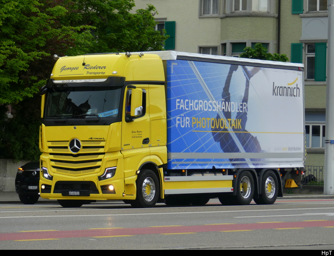 Mercedes mit Offener Ladefläche und Kran unterwegs in der Stadt Solothurn am 02.05.2024
