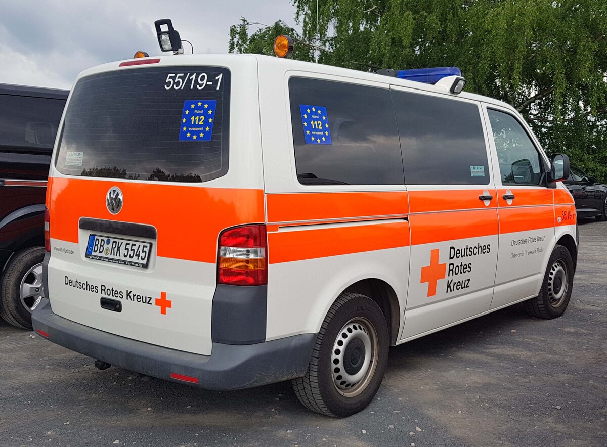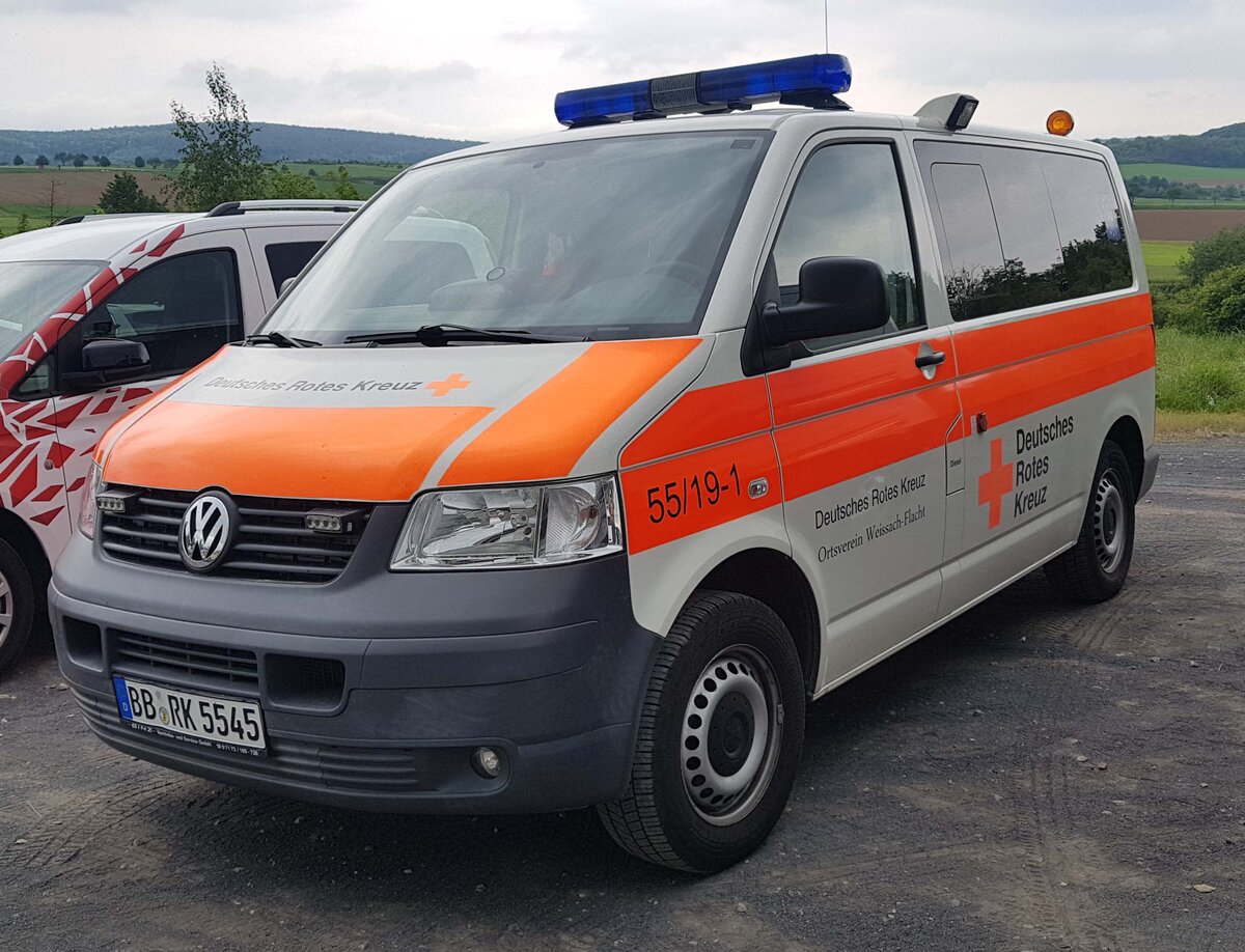 =VW T 5 des DRK OV WEISSACH-FLACHT steht im Mai auf dem Besucherparkplatz der RettMobil 2024