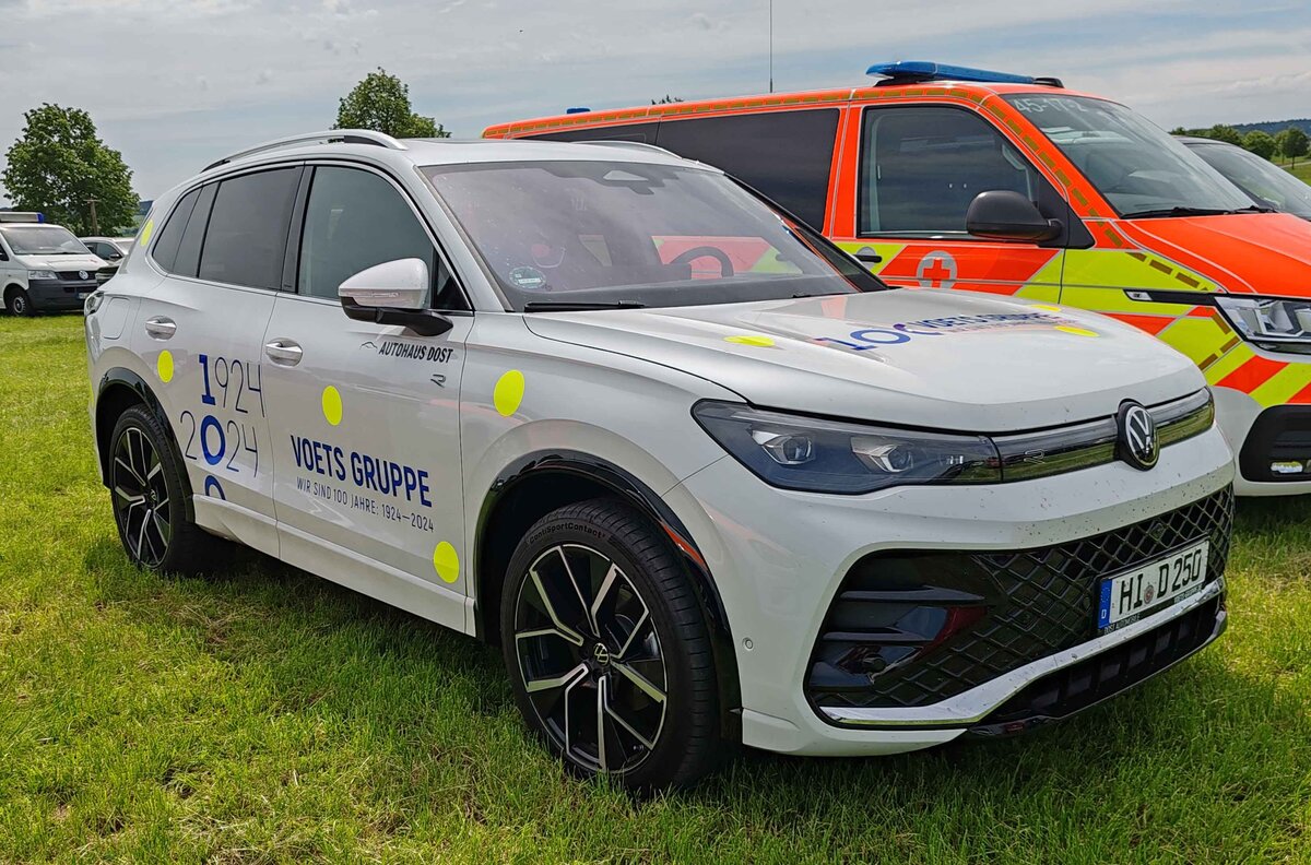 =VW Tiguan der VOETS GRUPPE steht im Mai auf dem Besucherparkplatz der RettMobil 2024