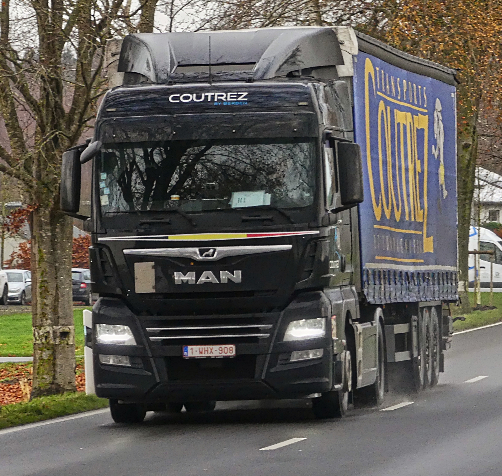Ein MAN TGX 18.460 der Fa. Woitzel war am 5.11.2024 in Hasbergen, Im Kamp, im Einsatz.