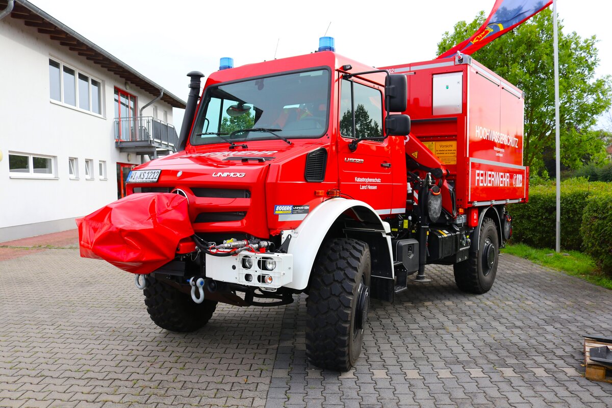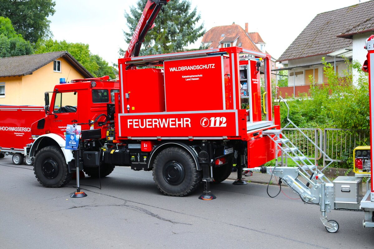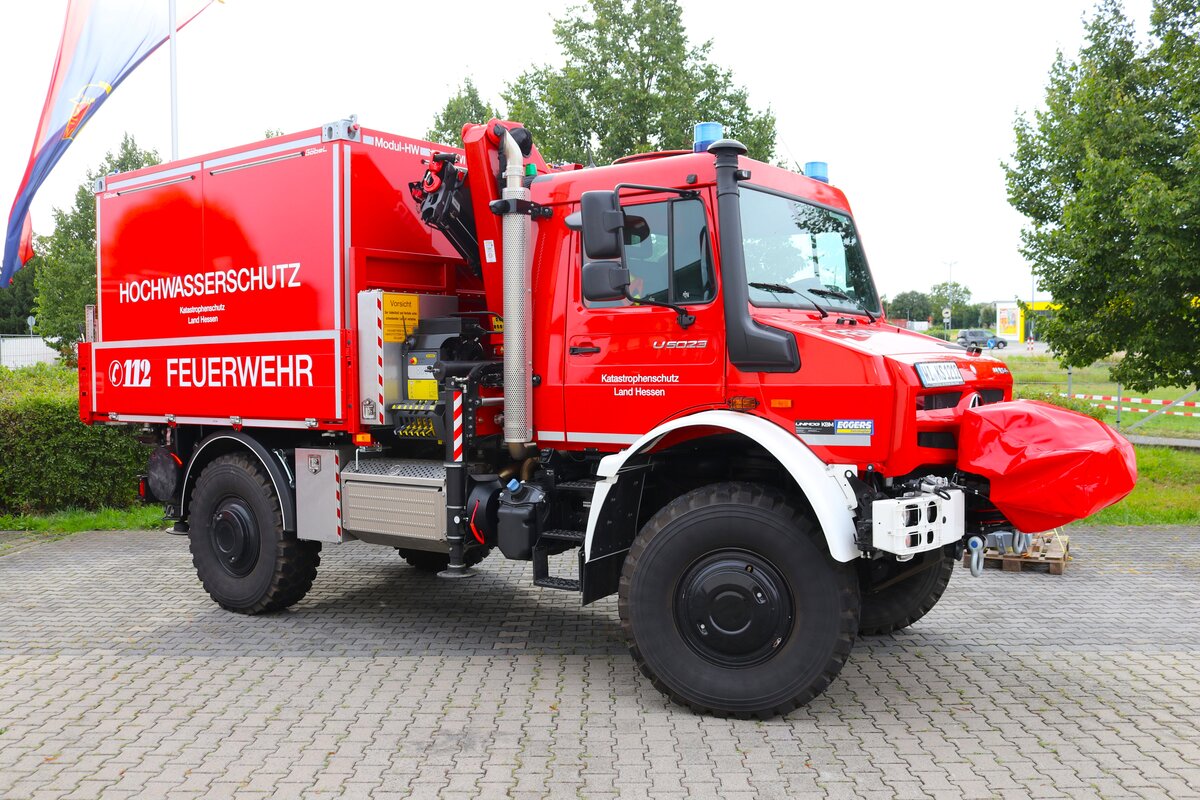 Feuerwehr Riedstadt Leeheim Mercedes Benz Unimog U5023 GW-L Kats mit den einzelnen Modulen am 18.08.24 beim Grillfest