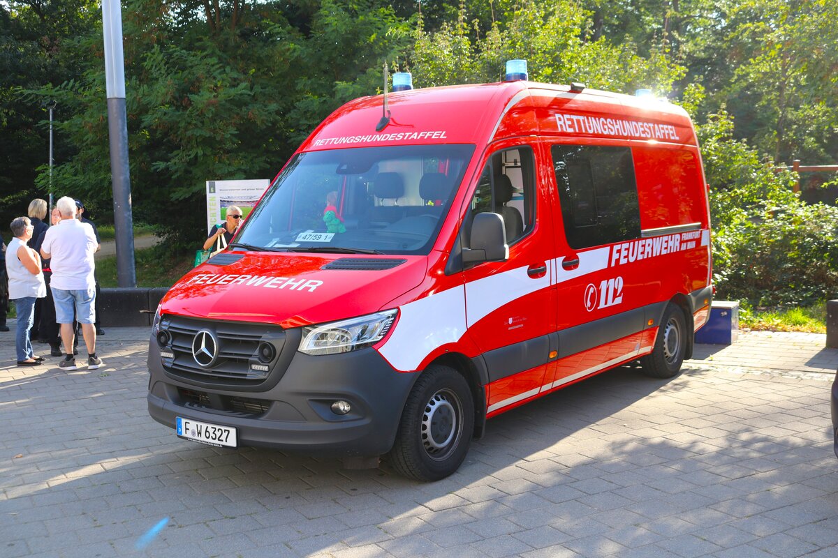 Feuerwehr Frankfurt am Main Hunderettungsstaffel Mercedes Benz Sprinter am 24.08.24 beim Leistungsvergleich Höhenrettung in Frankfurt am Main