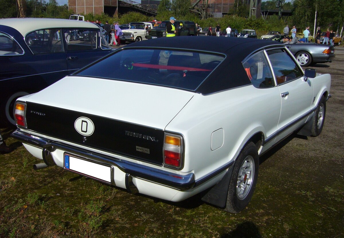 Heckansicht eines Ford Taunus TC Coupe 1.6 im Farbton diamantweiß und der Ausstattungsvariante GXL. 10. Oldtimertreffen des AMC Duisburg am 25.08.2024 am LaPaDu Duisburg.