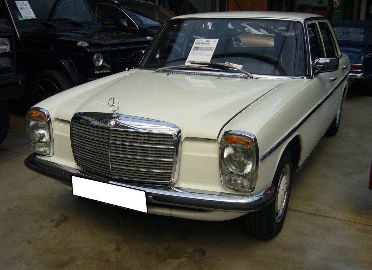 Mercedes Benz W114 V23 Limousine auch 230/6 genannt, gebaut in den Jahren von 1968 bis 1976. Die Modelle 230.6 waren die Modelle mit dem kleinsten Sechszylinderreihenmotor der sogenannten Strich/8 Baureihe. Eine solche Limousine kostete bei seiner Markteinführung mindestens DM 16.765,00 in der Grundausstattung. Der Motor leistet 120 PS aus einem Hubraum von 2292 cm³. Der Verbrauch wurde von Mercedes Benz mit ca. 15 Litern Super pro 100 Kilometer angegeben. Classic Remise Düsseldorf am 27.08.2024.
