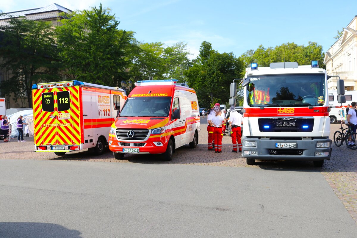 ASB Rettungsdienst Darmstadt-Dieburg Mercedes Benz Sprinter ELW und RTW und MAN TGM GW-San am 07.09.24 beim Blaulichttag in Darmstadt